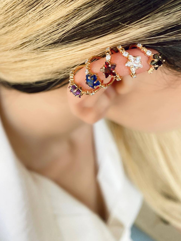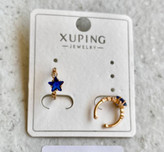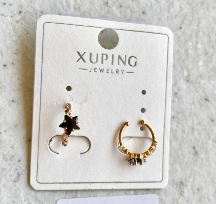گوشواره لاله گوشی (ایرکاف برای گوش بدون سوراخ)، مدل ستاره، برند ژوپینگ، با آبکاری طلا، رنگ ثابت و ضد حساسیت. (با نگین بنفش، قرمز، سفید، سورمه ای، مشکی)