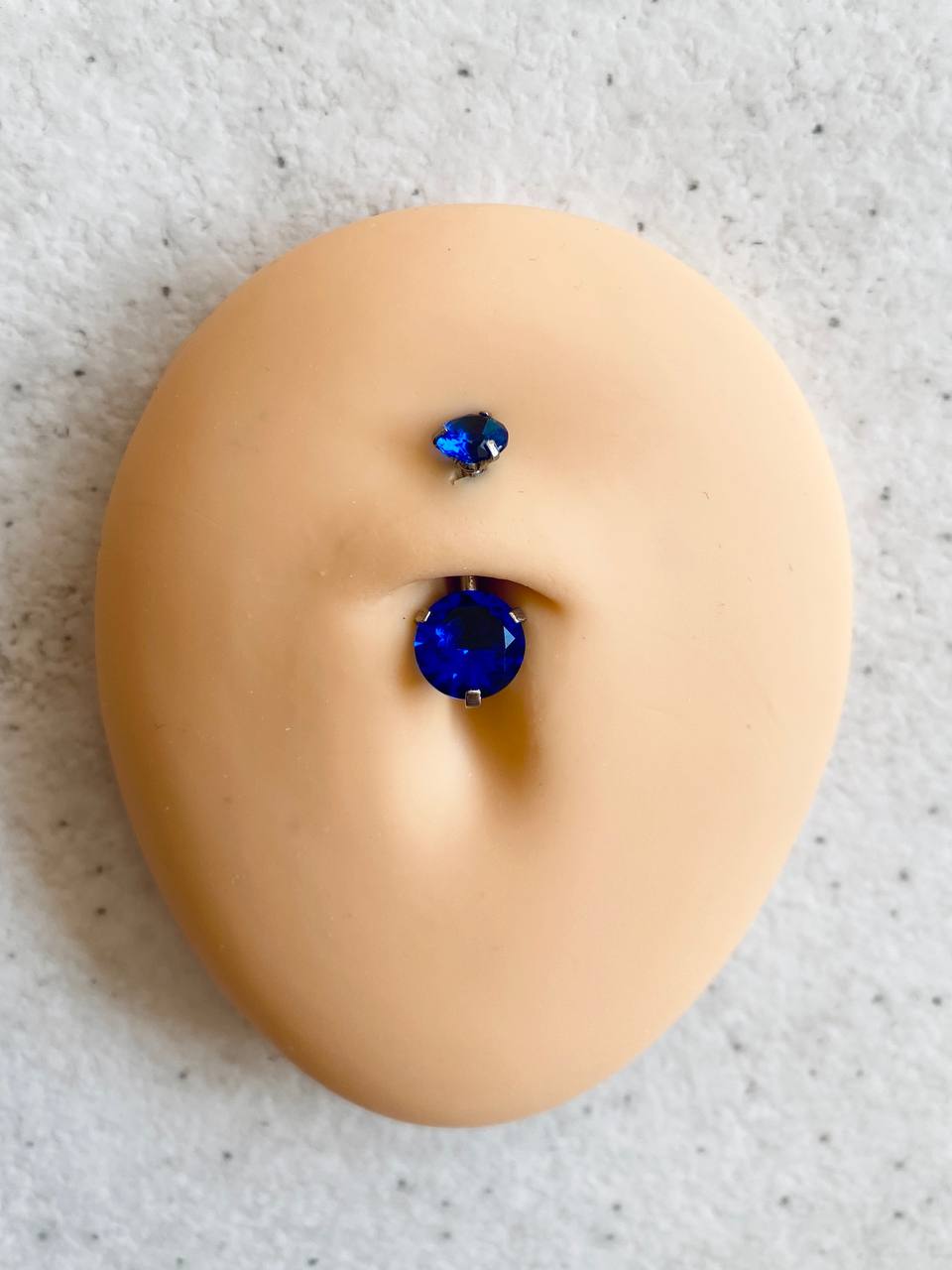 پیرسینگ ناف، مدل نگین دایره ای، جنس استیل، با آبکاری با دوام صنعتی دو لایه و ضد حساسیت.