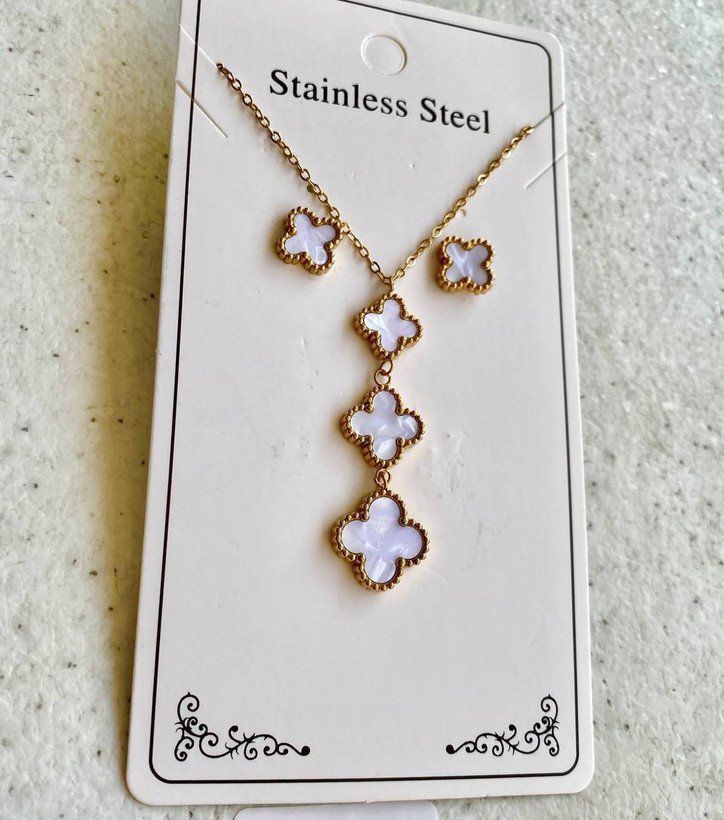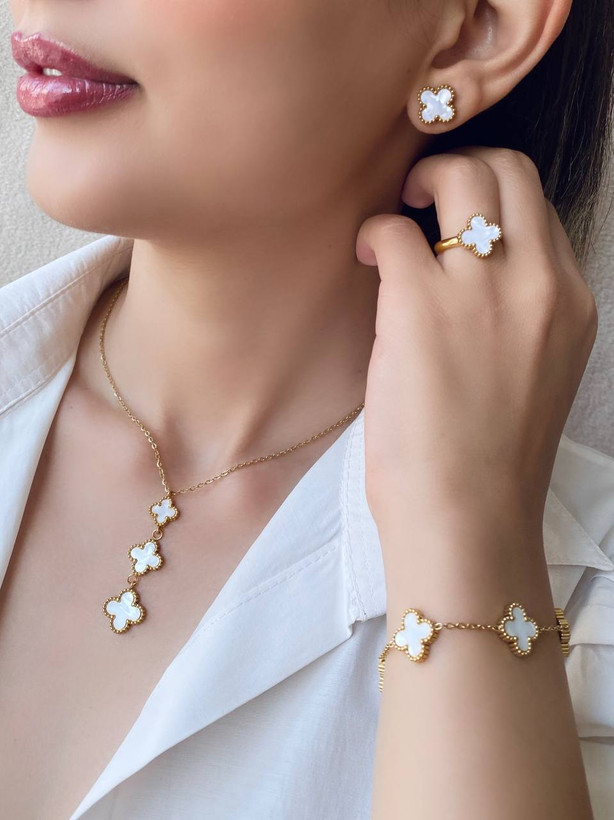 سرویس استیل زنانه مدل ونکلیف، رنگ سفید، با آبکاری با دوام صنعتی دو لایه و ضد حساسیت.