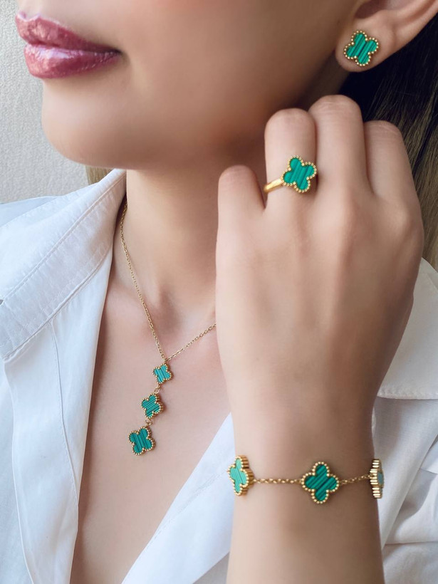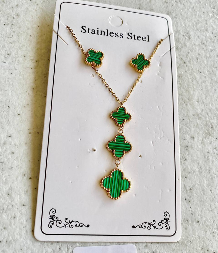 سرویس استیل زنانه مدل ونکلیف، رنگ سبز، با آبکاری با دوام صنعتی دو لایه و ضد حساسیت.
