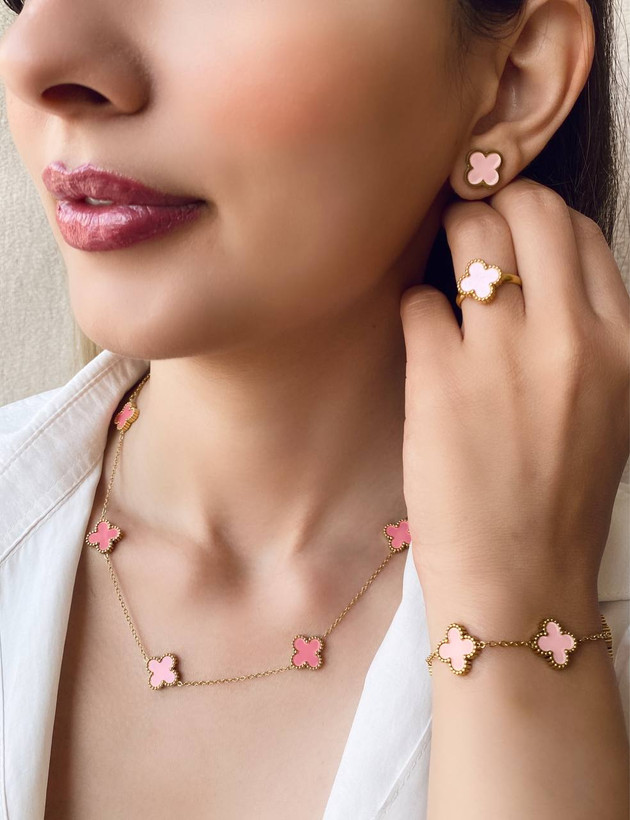 سرویس استیل زنانه مدل ونکلیف، رنگ صورتی، با آبکاری با دوام صنعتی دو لایه و ضد حساسیت.