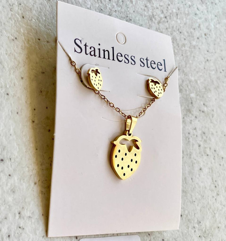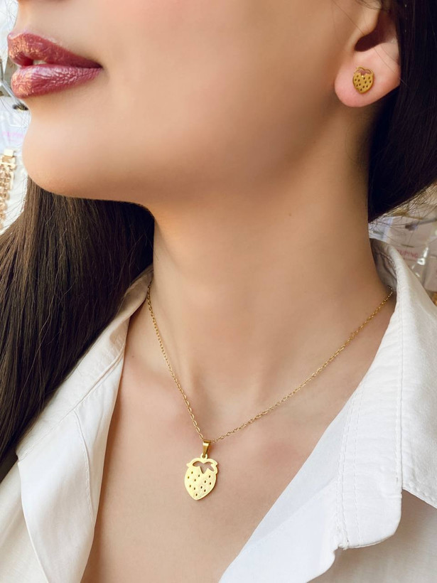نیمست استیل زنانه مدل توت فرنگی، با آبکاری با دوام صنعتی دو لایه و ضد حساسیت.