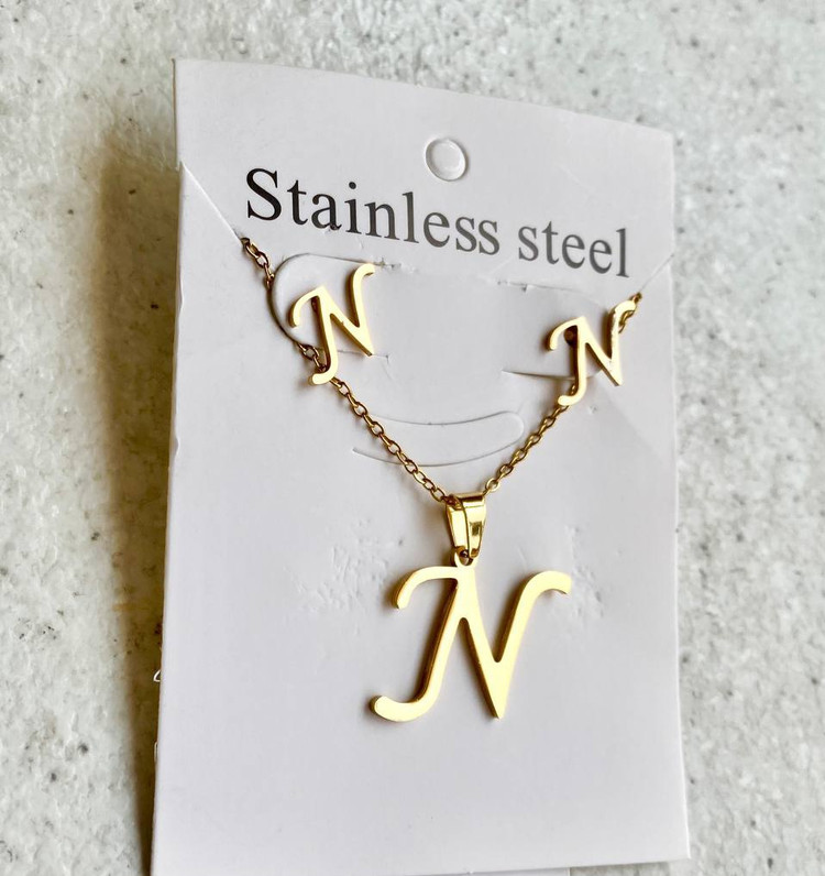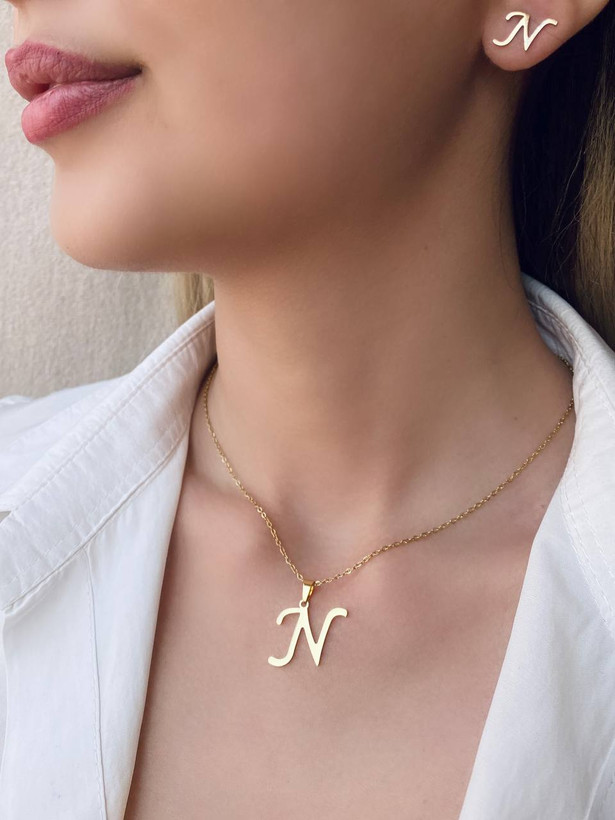نیمست استیل زنانه مدل حرف N، با آبکاری با دوام صنعتی دو لایه و ضد حساسیت.