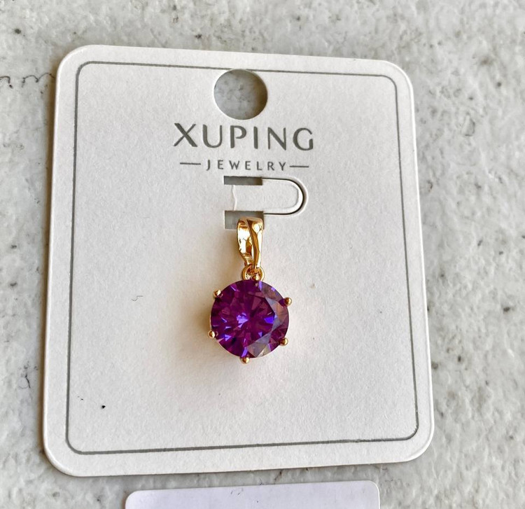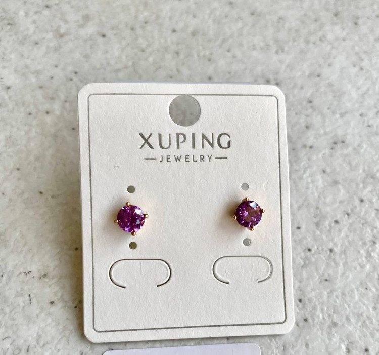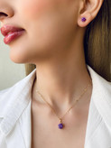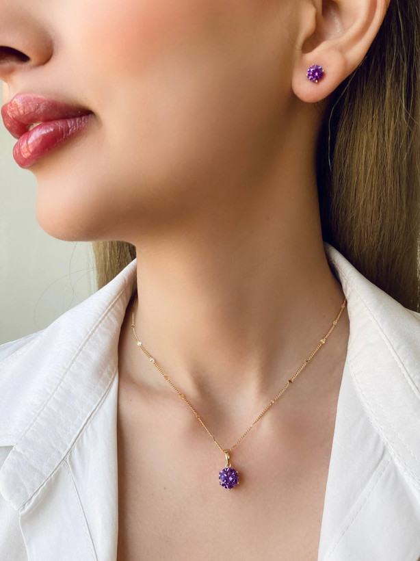 نیمست زنانه مدل تک نگین بنفش، همراه با انگشتر، برند ژوپینگ، با آبکاری طلا ، رنگ ثابت و ضد حساسیت.