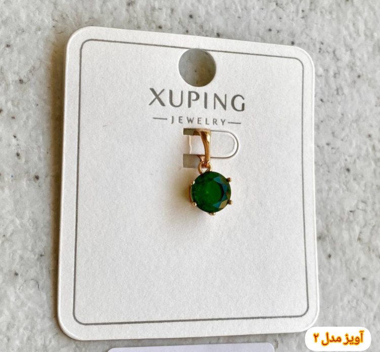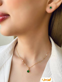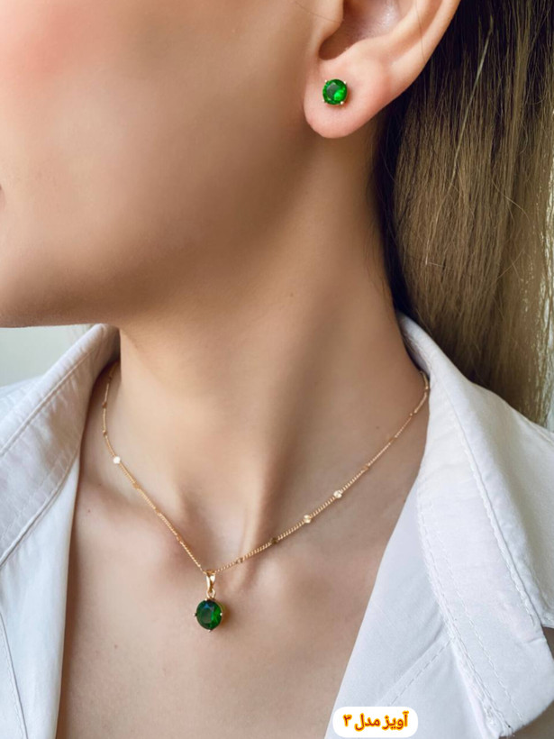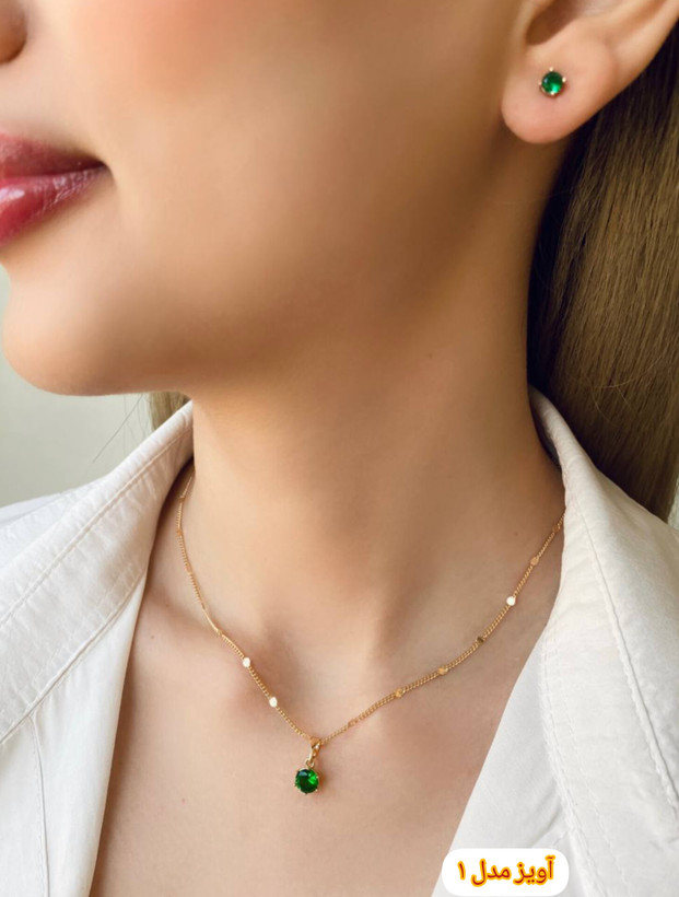نیمست زنانه مدل تک نگین سبز، همراه با انگشتر، برند ژوپینگ، با آبکاری طلا ، رنگ ثابت و ضد حساسیت.