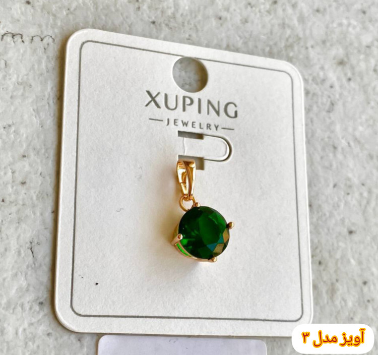 نیمست مدل تک نگین سبز، همراه با انگشتر، برند ژوپینگ