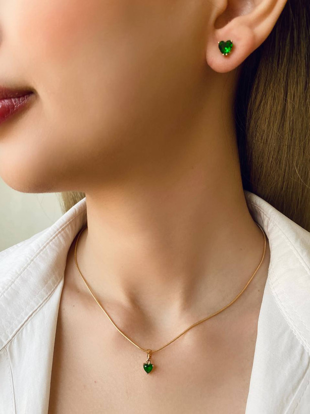 نیمست زنانه مدل نگین قلبی سبز، برند ژوپینگ، با آبکاری طلا ، رنگ ثابت و ضد حساسیت.