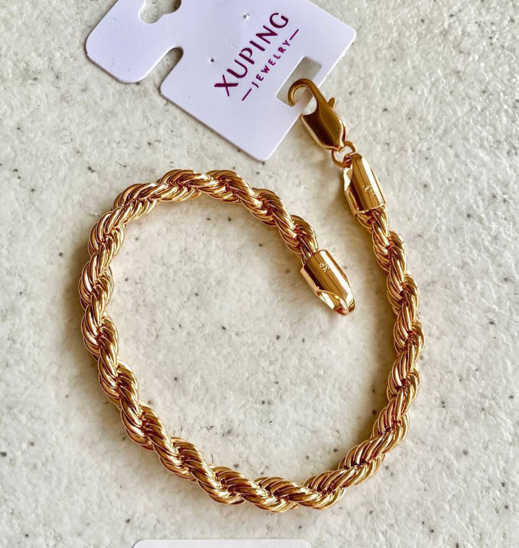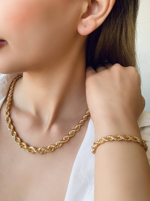 نیمست زنانه مدل طنابی، شامل دستبند و گردنبند، برند ژوپینگ، با آبکاری طلا ، رنگ ثابت و ضد حساسیت.