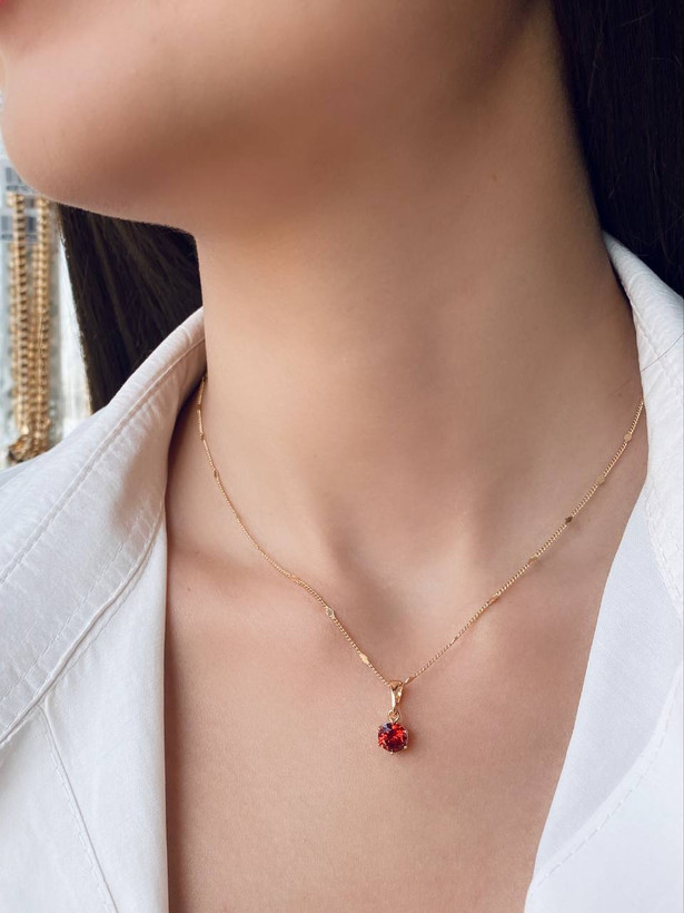 آویز گردنبند مدل نگین دایره، با رنگ های قرمز، سورمه ای و سبز، برند ژوپینگ، با آبکاری طلا ، رنگ ثابت و ضد حساسیت.
