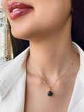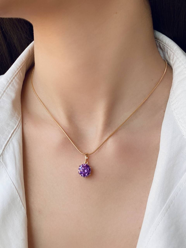 آویز گردنبند مدل نگین دایره، با رنگ های سفید، سبز، بنفش، سورمه ای و مشکی، برند ژوپینگ، با آبکاری طلا ، رنگ ثابت و ضد حساسیت.