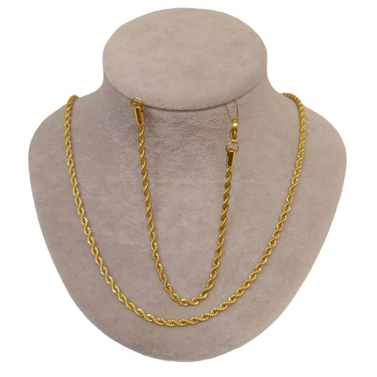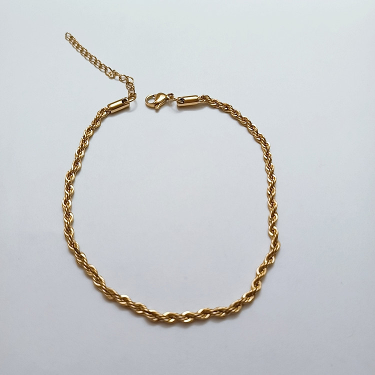 ست استیل زنانه، مدل زنجیر طنابی، شامل دستبند، گردنبند و پابند، با آبکاری با دوام صنعتی دو لایه و ضد حساسیت.