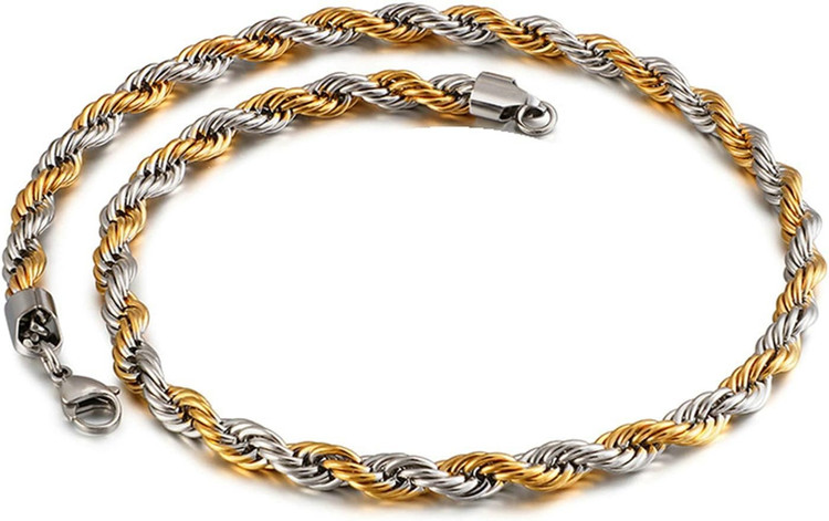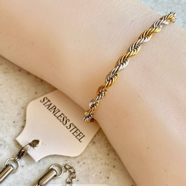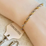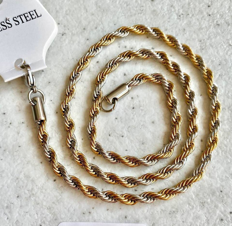 ست دو رنگ استیل، مدل زنجیر طنابی، شامل دستبند، گردنبند و پابند، کد ۰۵