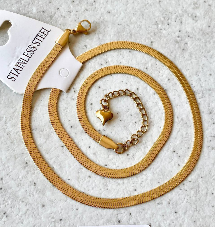 ست استیل زنانه، مدل زنجیر ماری، شامل دستبند، گردنبند و پابند، با آبکاری با دوام صنعتی دو لایه و ضد حساسیت.