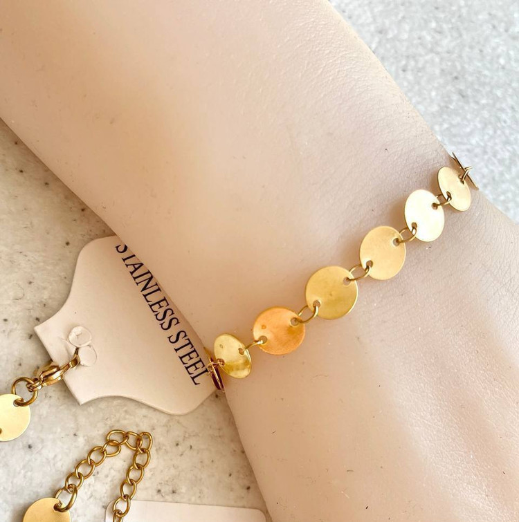 دستبند استیل، مدل سکه ای (پولکی)، با آبکاری با دوام صنعتی دو لایه و ضد حساسیت.