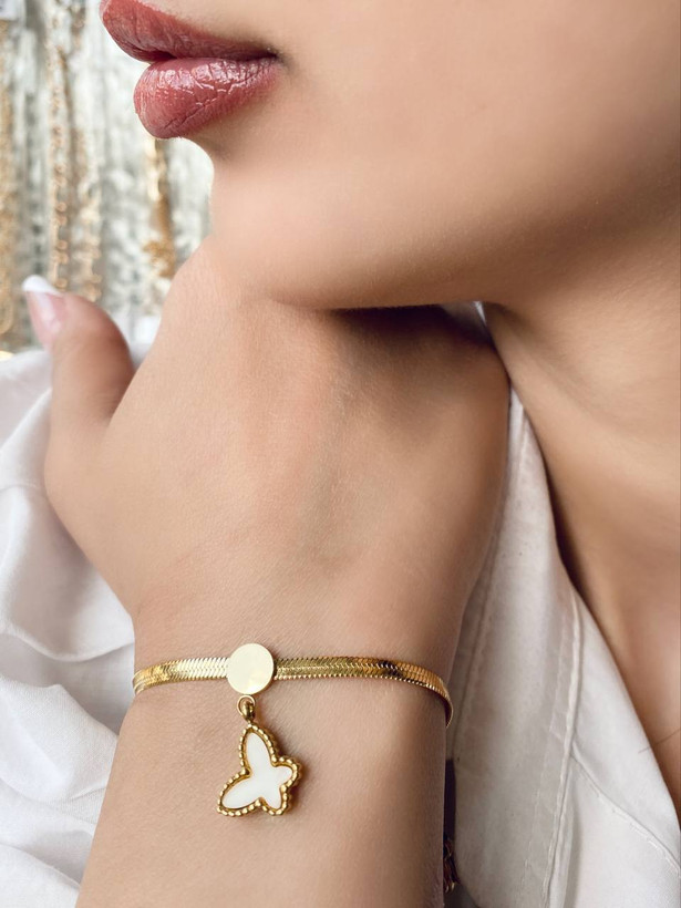 دستبند استیل ماری با آویز پروانه، با آبکاری با دوام صنعتی دو لایه و ضد حساسیت