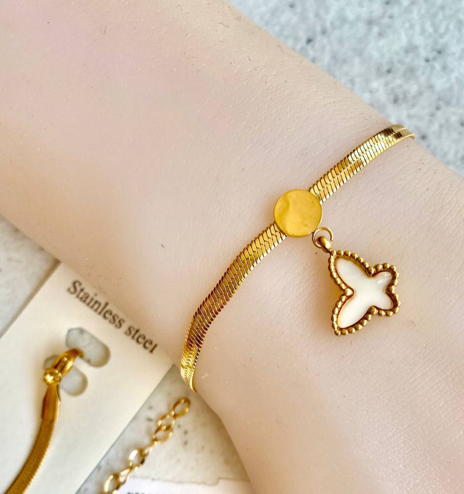 دستبند استیل ماری با آویز پروانه، با آبکاری با دوام صنعتی دو لایه و ضد حساسیت