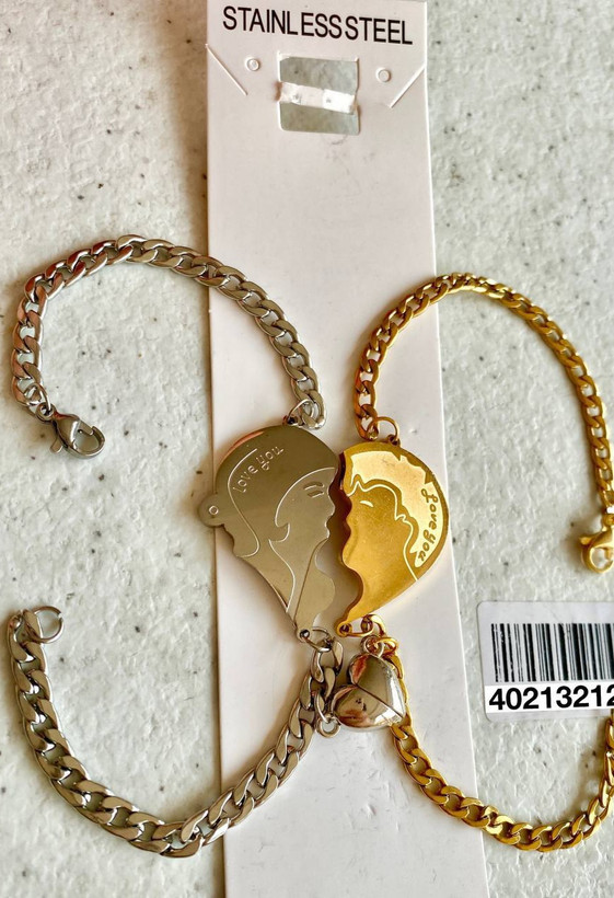 دستبند استیل مدل ست دوستی، طرح عشق، همراه با قلب مگنتی مجموعه ۲ عددی