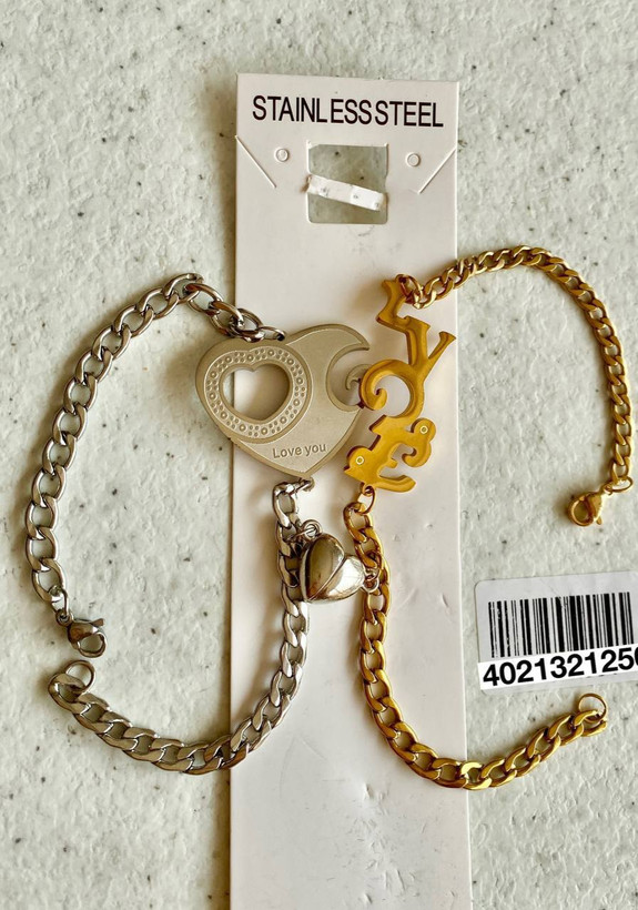دستبند استیل مدل ست دوستی، طرح عشق (Love)، همراه با قلب مگنتی مجموعه ۲ عددی