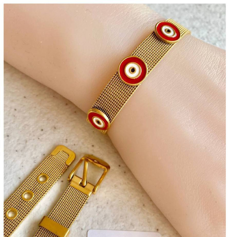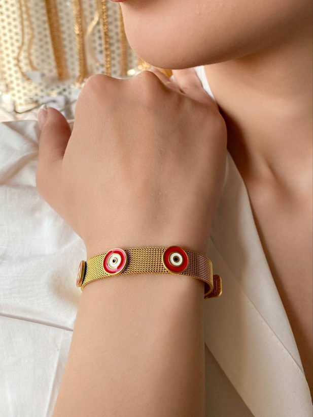 دستبند استیل حصیری مدل چشم نظر (چشم زخم)، با آبکاری با دوام صنعتی دو لایه و ضد حساسیت