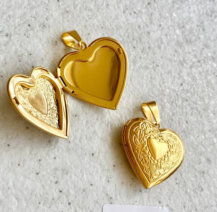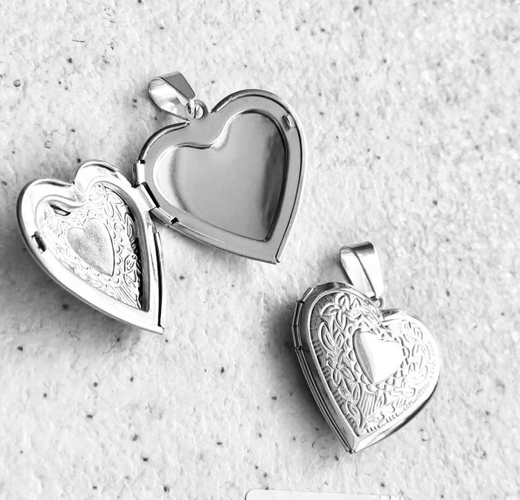 آویز گردنبند قاب عکسی، مدل قلب طرح دار، جنس استیل، با آبکاری دو لایه صنعتی و ضد حساسیت.