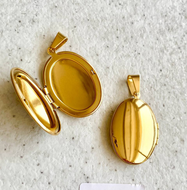 آویز گردنبند قاب عکسی، مدل بیضی، جنس استیل، با آبکاری دو لایه صنعتی و ضد حساسیت.