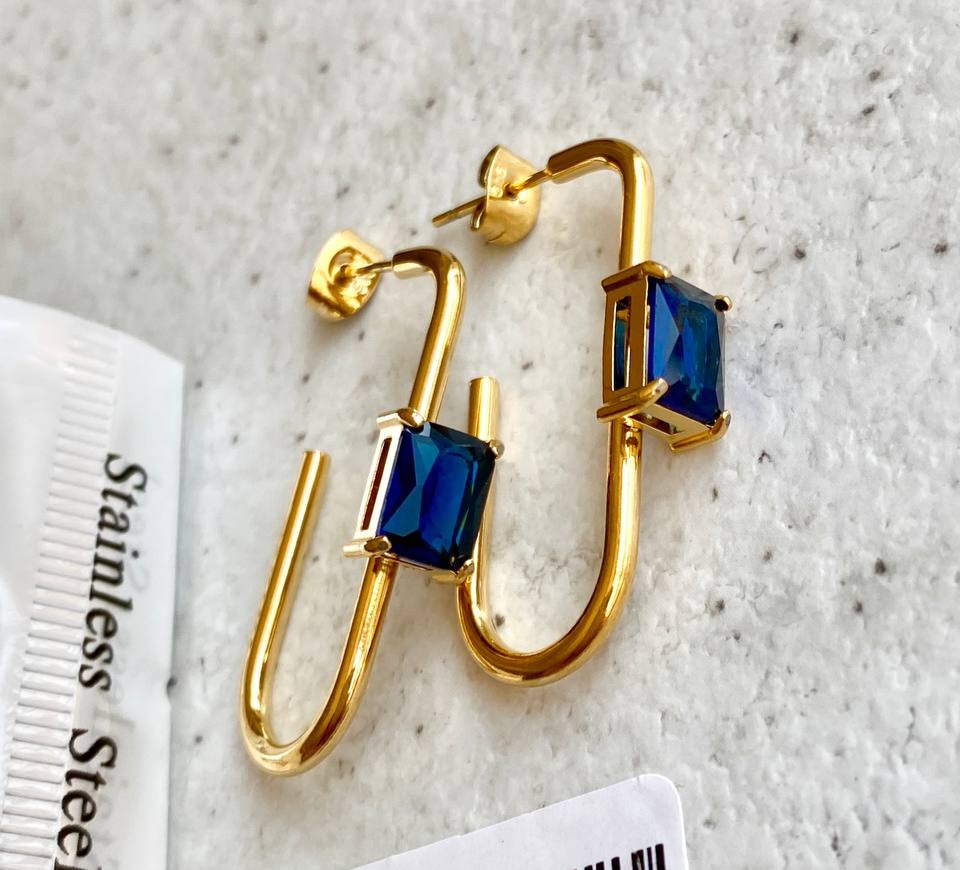 گوشواره میخی استیل مدل مستطیل نگین دار، با آبکاری با دوام صنعتی دو لایه و ضد حساسیت