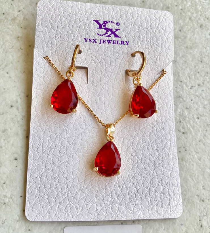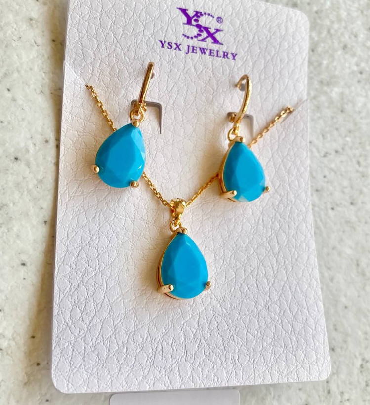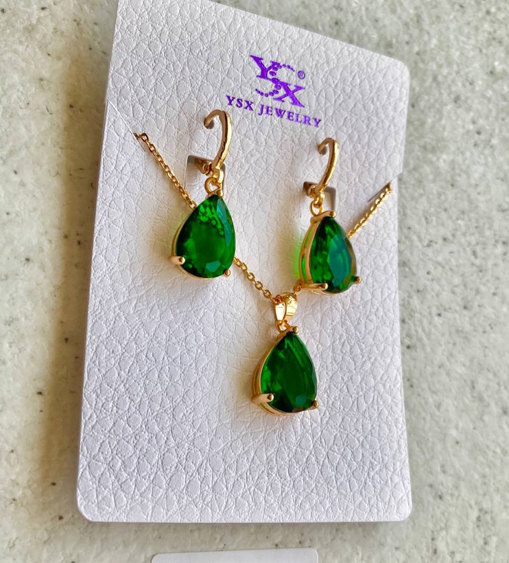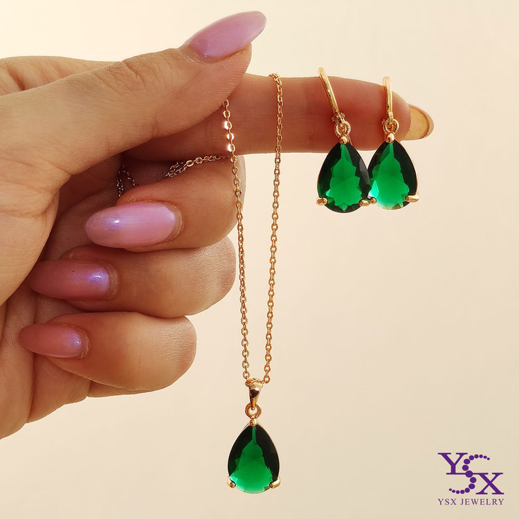 نیمست زنانه مدل تگ نگین با رنگ های سبز، فیروزه ای و قرمز، برند ysx، با آبکاری طلا ، رنگ ثابت و ضد حساسیت.