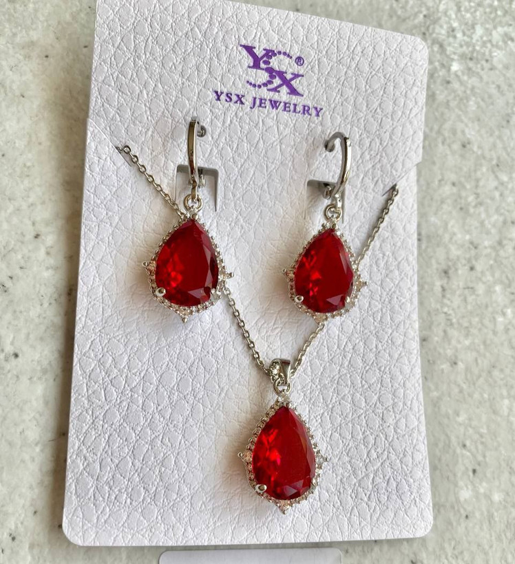 نیمست زنانه مدل اشک با نگین سبز و قرمز، برند ysx، با آبکاری طلا ، رنگ ثابت و ضد حساسیت.