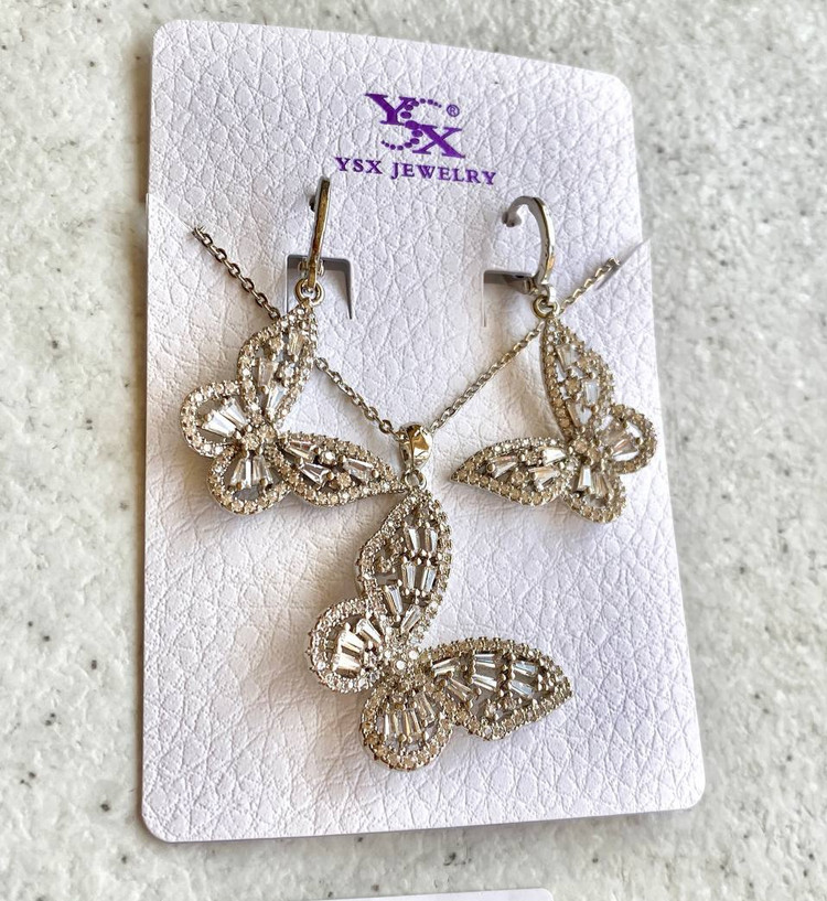 سرویس زنانه مدل پروانه، برند ysx، با آبکاری طلا ، رنگ ثابت و ضد حساسیت.