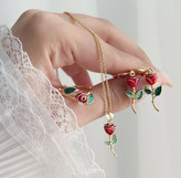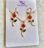 سرویس زنانه مدل گل رز، برند ysx، با آبکاری طلا، رنگ ثابت و ضد حساسیت.