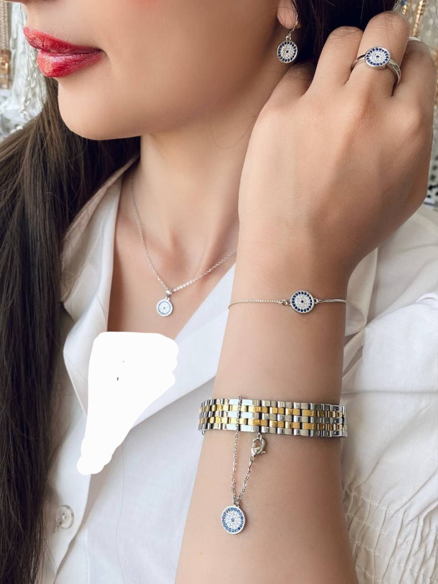 سرویس زنانه مدل چشم نظر (چشم زخم)، برند ysx، با آبکاری طلا، رنگ ثابت و ضد حساسیت.