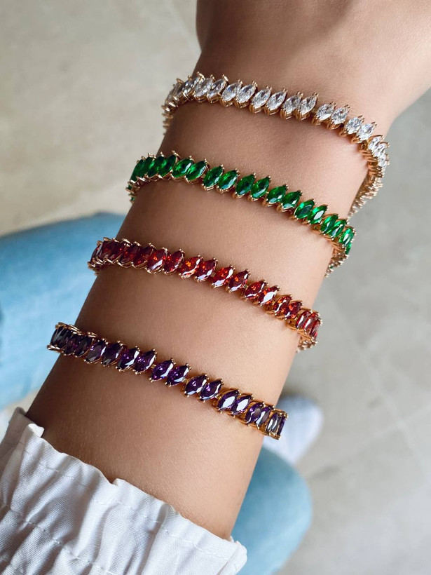 دستبند زنانه مدل نگین دانه اناری، برند ژوپینگ، با تنوع رنگ