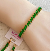دستبند زنانه مدل نگین دانه اناری، برند ژوپینگ، با نگین مشکی و آبی، با آبکاری طلا، رنگ ثابت و ضد حساسیت