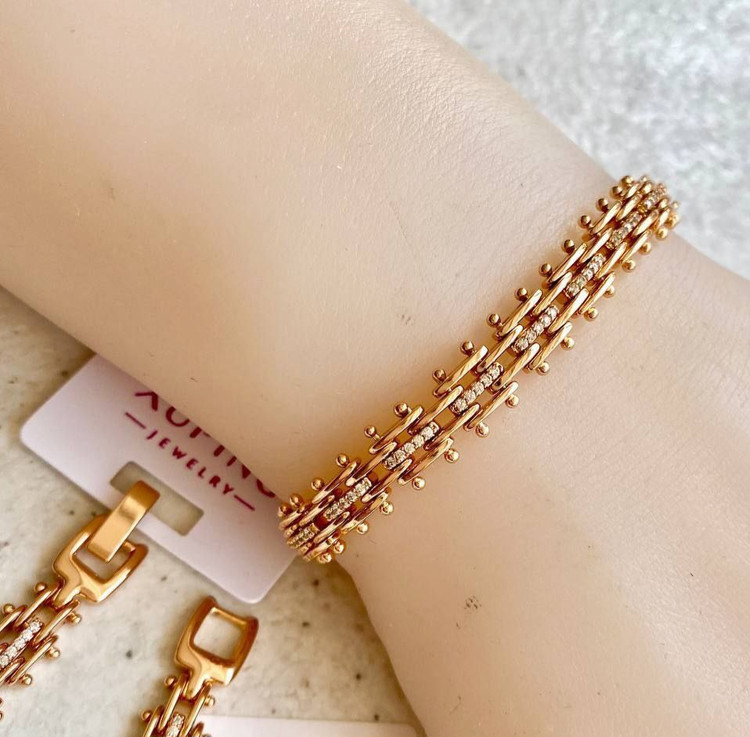 دستبند زنانه مدل نردبانی، برند ژوپینگ، با آبکاری طلا، رنگ ثابت و ضد حساسیت