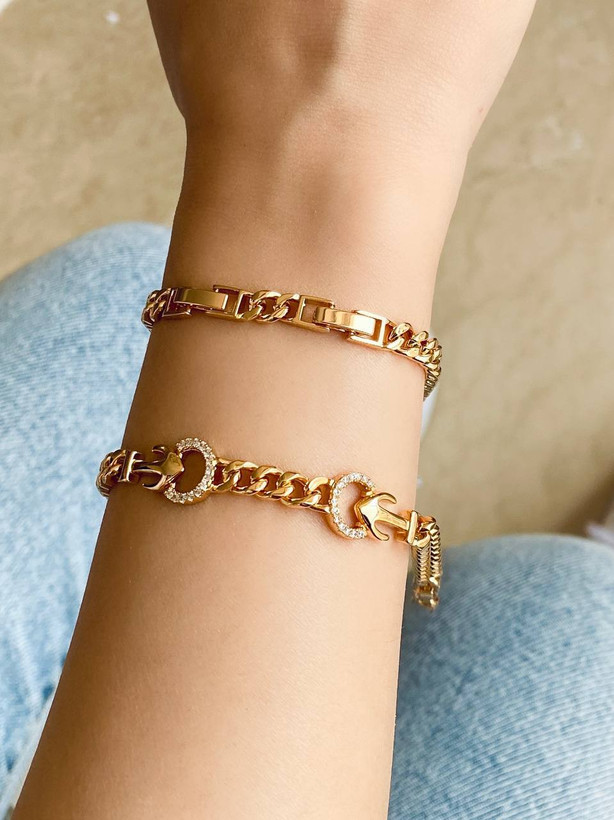 دستبند کارتیه (کارتیر) زنانه مدل لنگر، برند ژوپینگ، با آبکاری طلا، رنگ ثابت و ضد حساسیت