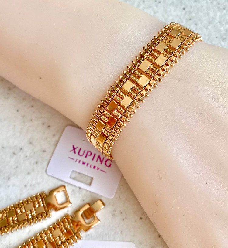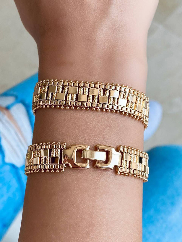 دستبند جلفایی مدل شطرنجی، برند ژوپینگ، با آبکاری طلا، رنگ ثابت و ضد حساسیت