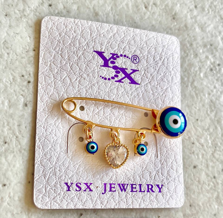 سنجاق سینه مدل چشم نظر با آویز قلب، برند ysx