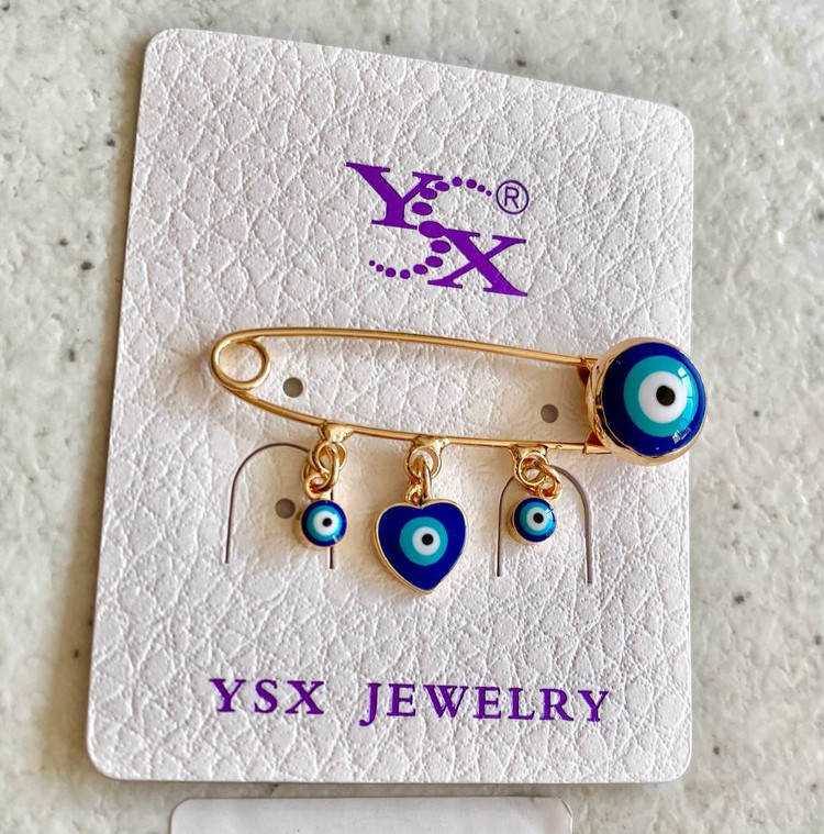 سنجاق سینه مدل چشم نظر با آویز قلب، برند ysx کد ۰۲