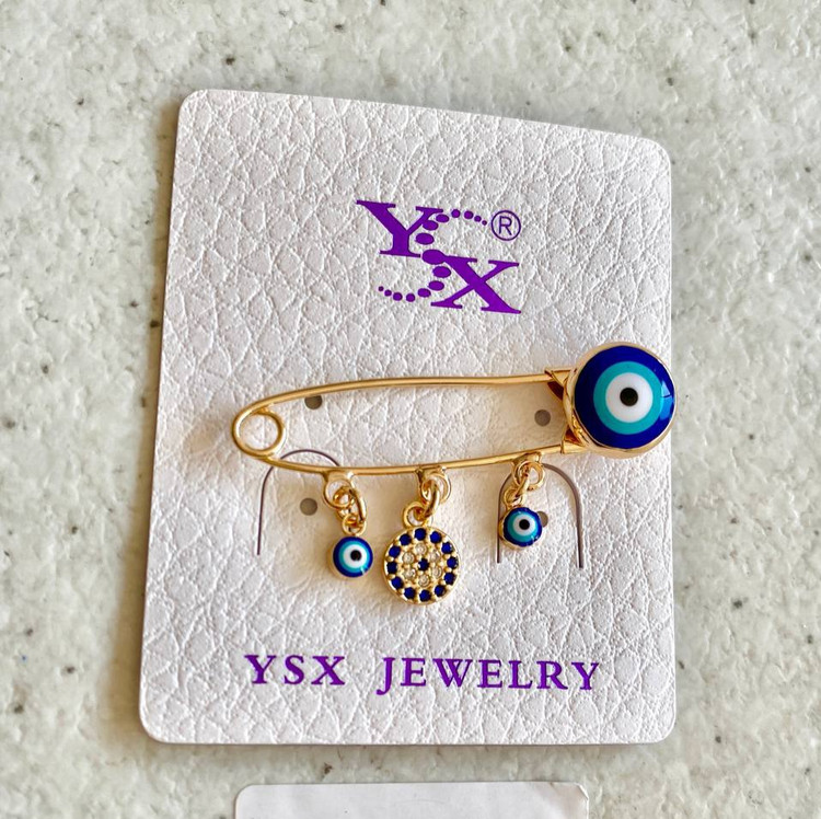 سنجاق سینه مدل چشم نظر (چشم زخم)، برند ysx، با آبکاری طلا، رنگ ثابت و ضد حساسیت.