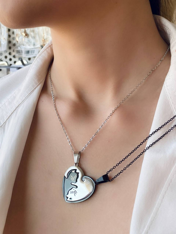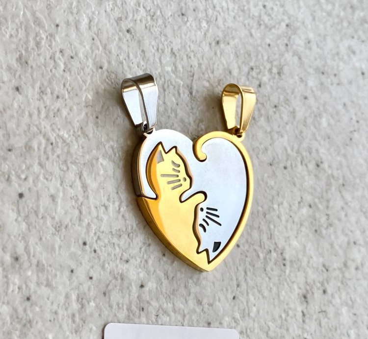 ست دو عددی آویز گردنبند استیل، مدل گربه های عاشق، رنگ ثابت و ضد حساسیت (گردنبند کاپلی یا ست دوستی)