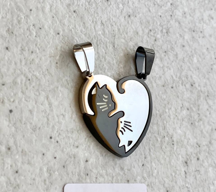 آویز گردنبند استیل، مدل ست دوستی، طرح گربه های عاشق، با تنوع رنگ
