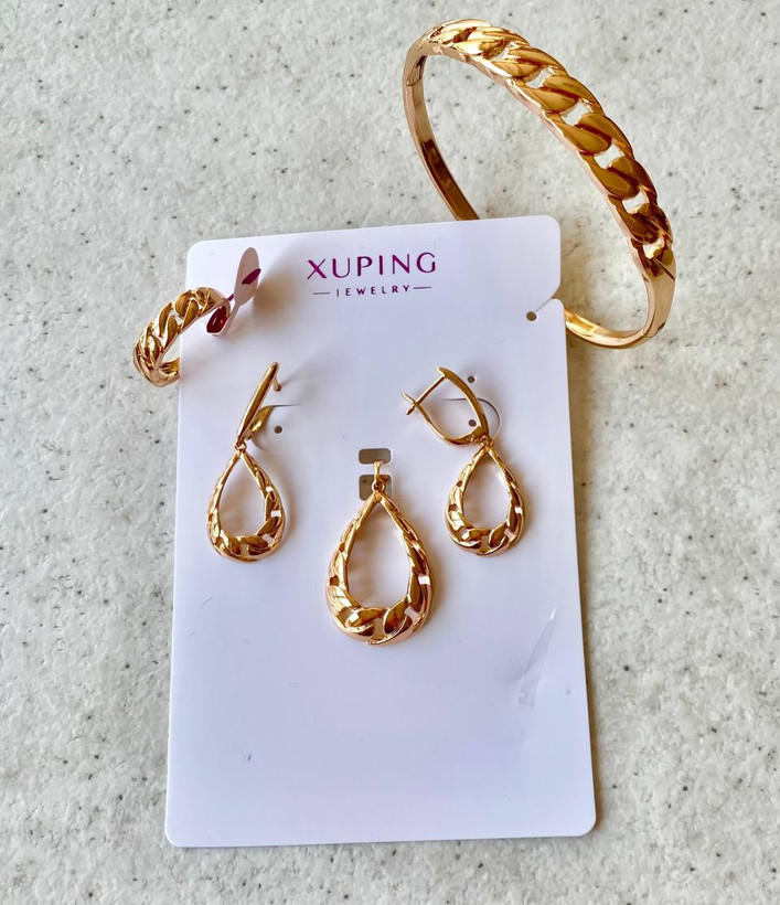 سرویس شامل آویز گردنبند، گوشواره، تکپوش، انگشتر و فاقد زنجیر می باشد.