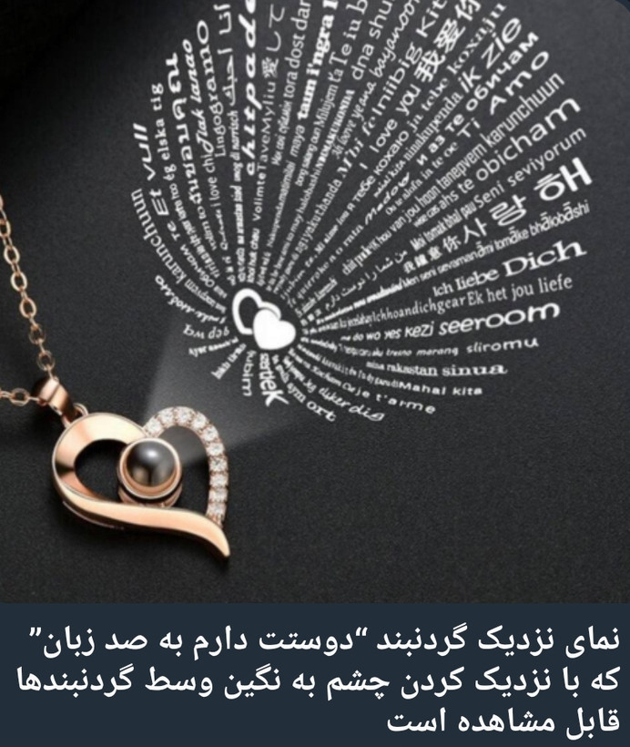با تاباندن نور فلش موبایل به قسمت نگیندار، تصویر جمله دوستت دارم به صد زبان مختلف، بر روی دیوار می افتد.
