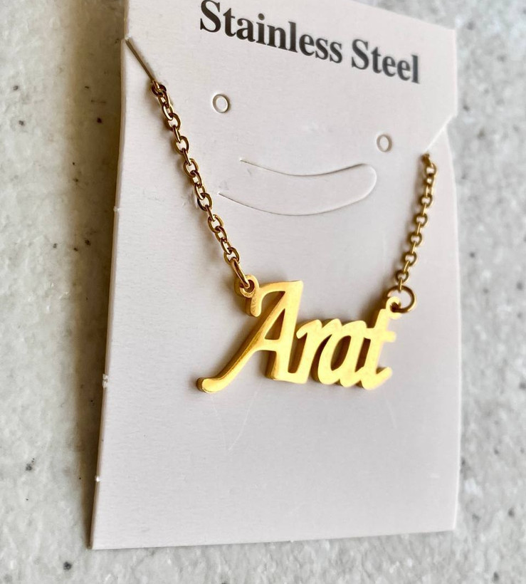 گردنبند استیل مدل اسم آرات، با آبکاری دو لایه صنعتی و ضد حساسیت.