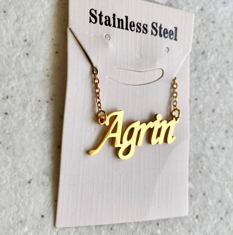گردنبند استیل مدل اسم آگرین، با آبکاری دو لایه صنعتی و ضد حساسیت.