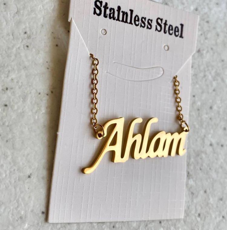 گردنبند استیل مدل اسم احلام، با آبکاری دو لایه صنعتی و ضد حساسیت.