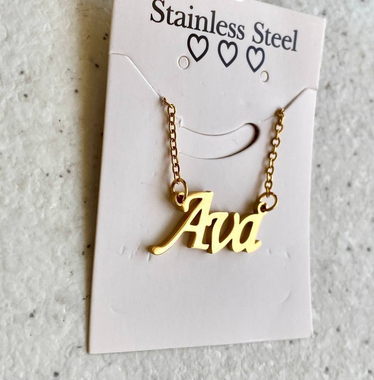 گردنبند استیل مدل اسم آوا، با آبکاری دو لایه صنعتی و ضد حساسیت.