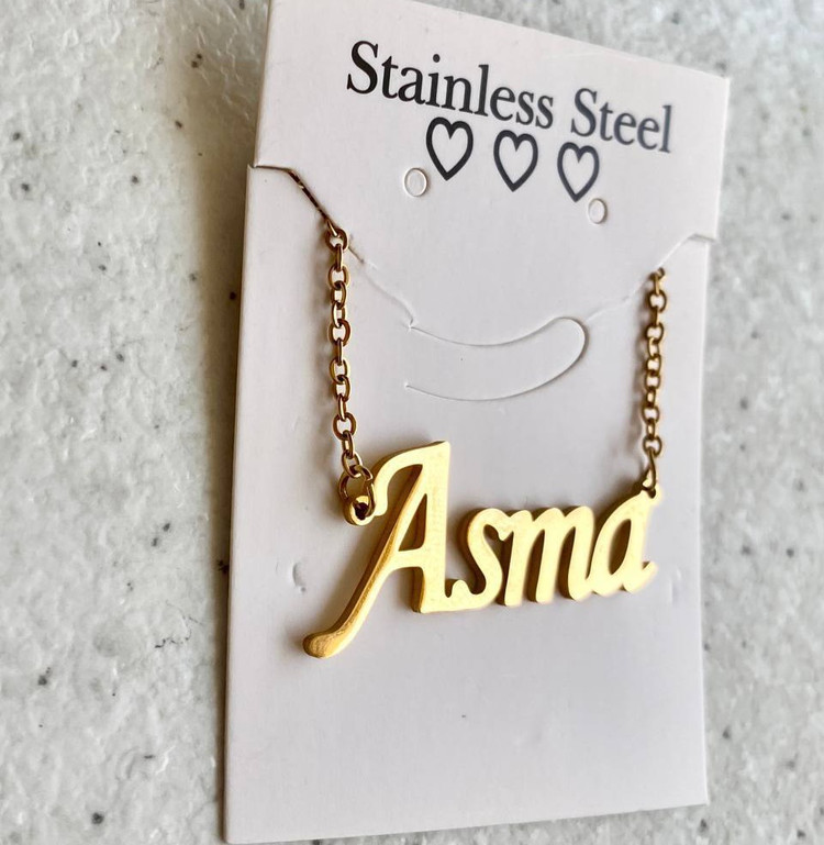 گردنبند استیل مدل اسم اسما (اسماء)، با آبکاری دو لایه صنعتی و ضد حساسیت.